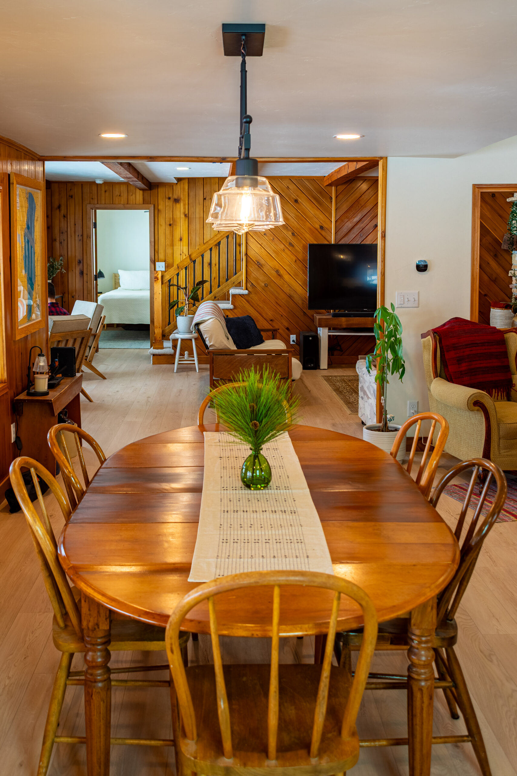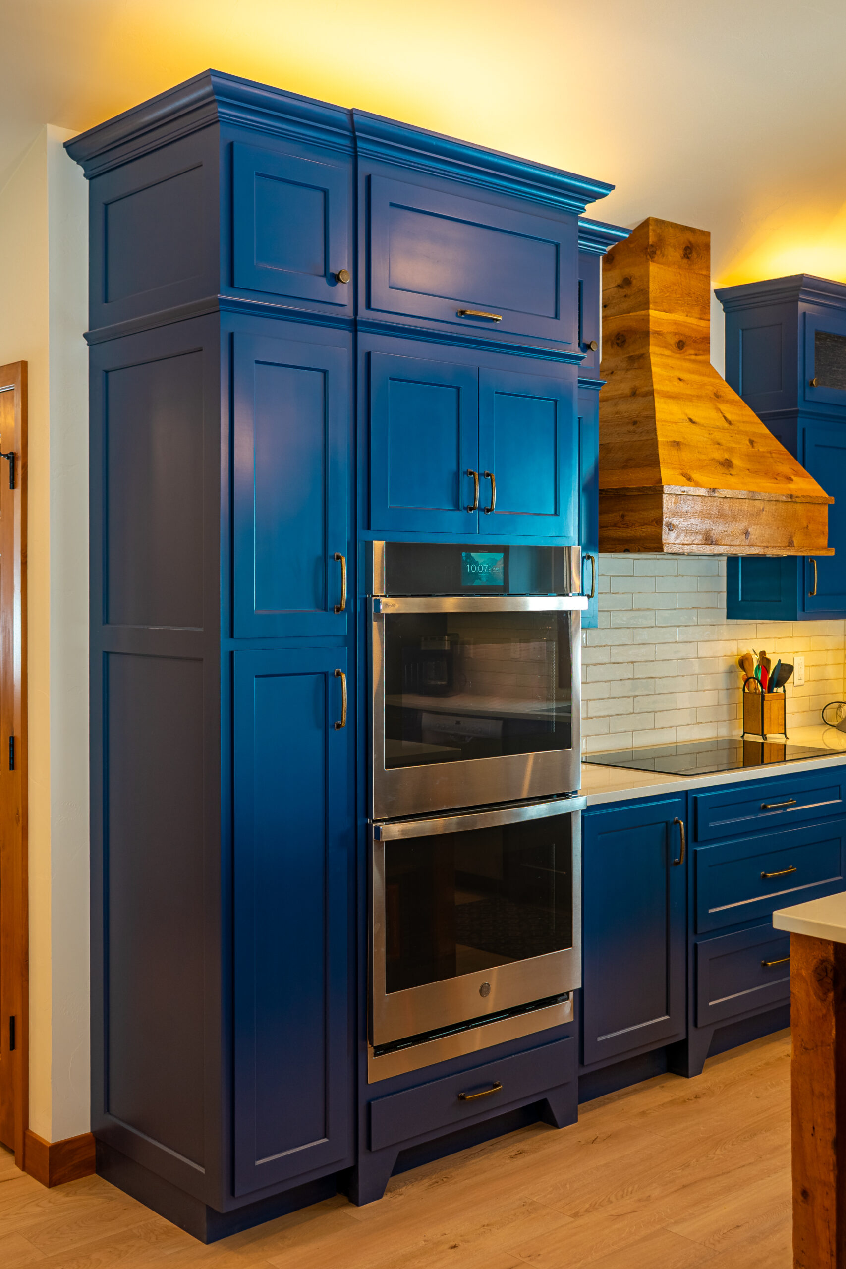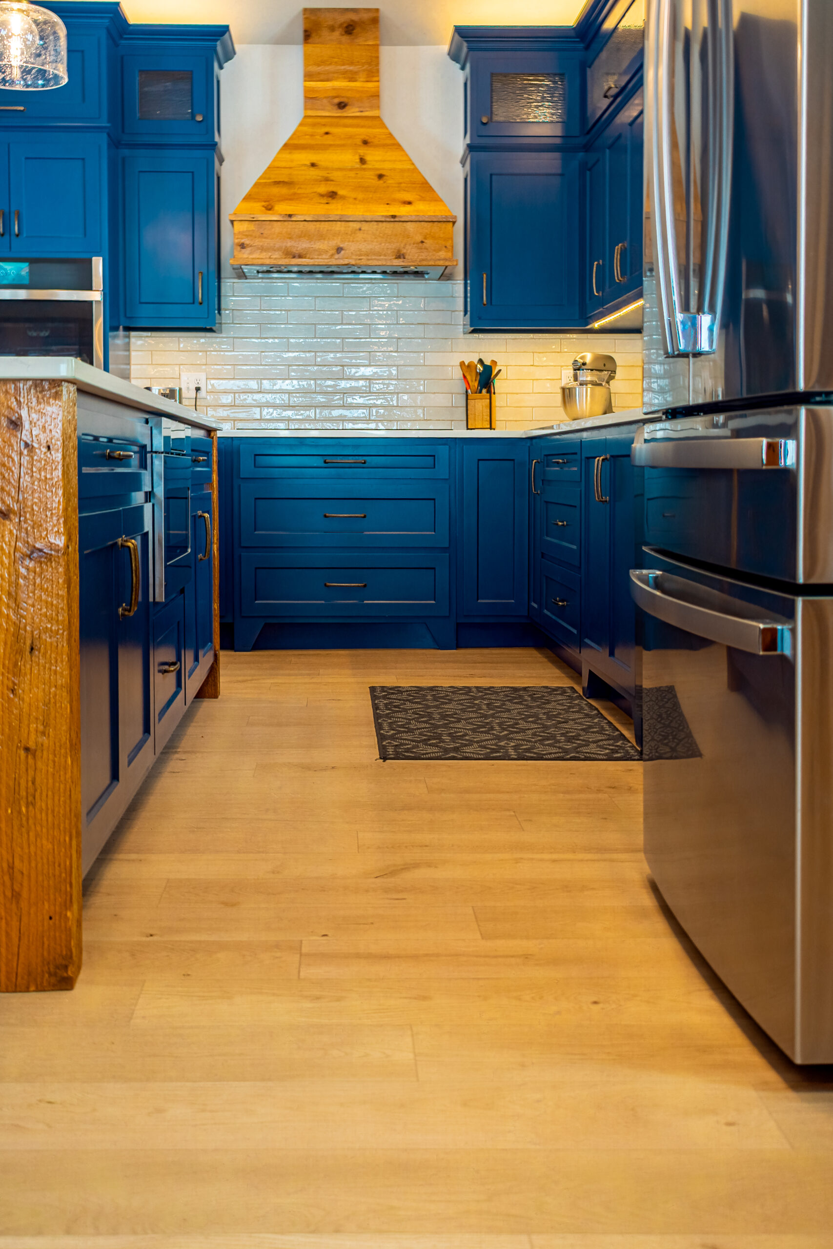 At the heart of the home is a rich material palette—highlighted by wood salvaged from a 100+ year-old family farm. Carefully restored and integrated throughout, these elements carry forward a sense of legacy while adding warmth and character to each space. Paired with deep-toned cabinetry, natural stone, and clean finishes, the result is a balanced contrast between old and new.