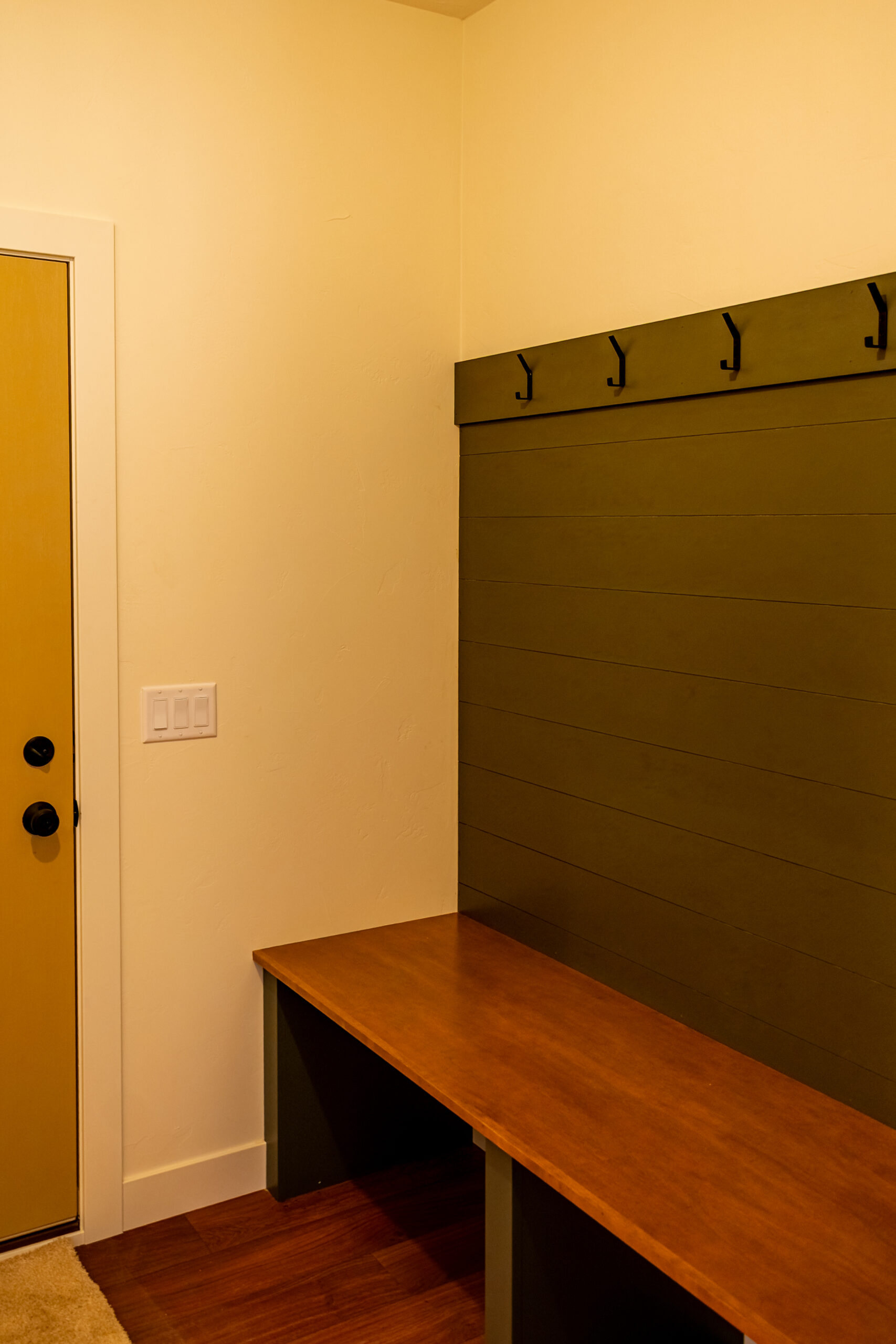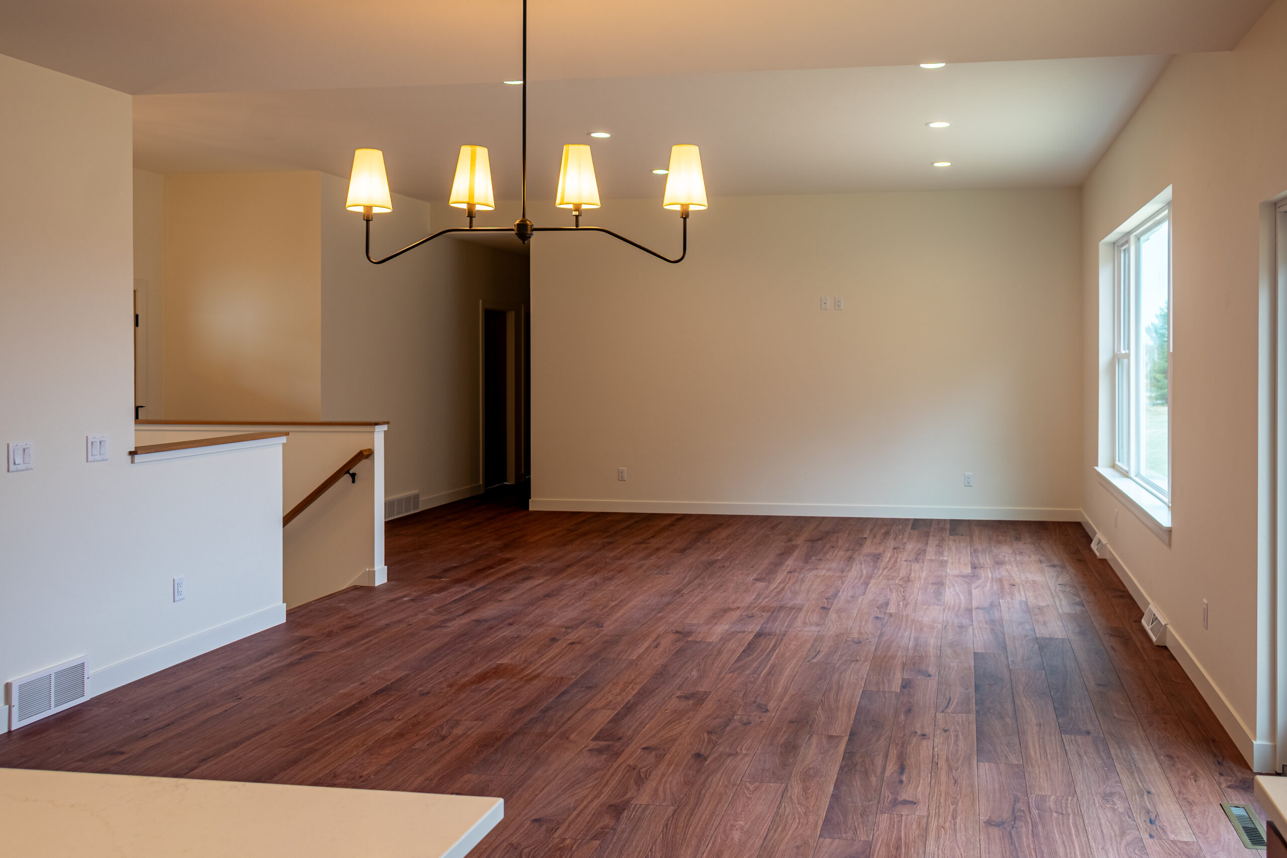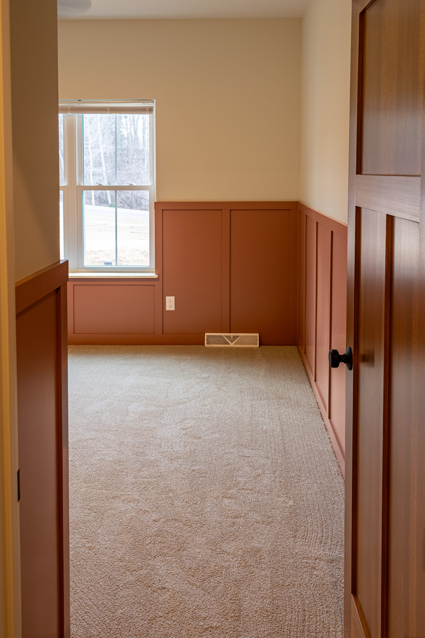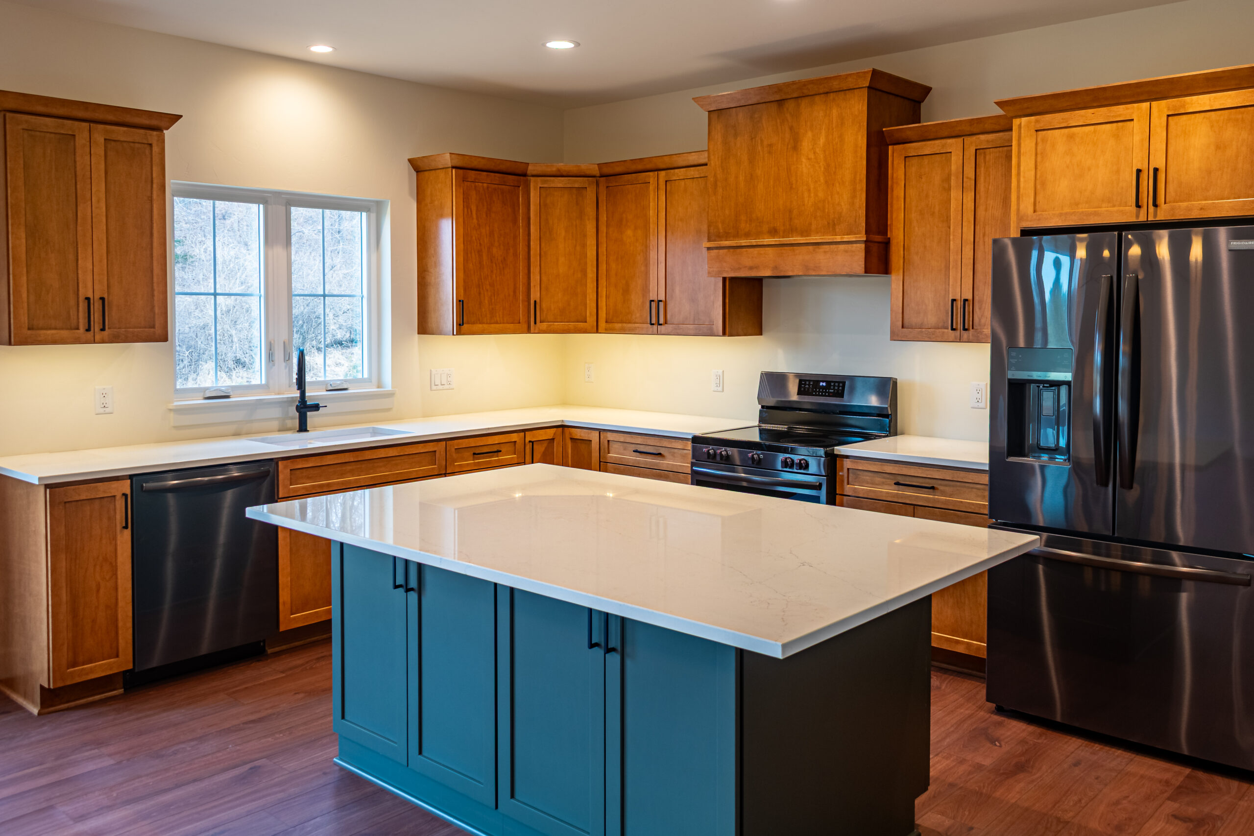 From the moment you enter, the space opens effortlessly, guided by soft transitions and an understated palette. Warm wood tones carry throughout the home, bringing a sense of continuity and calm, while subtle contrasts—like the muted green island and dark hardware—add depth without overwhelming the space.