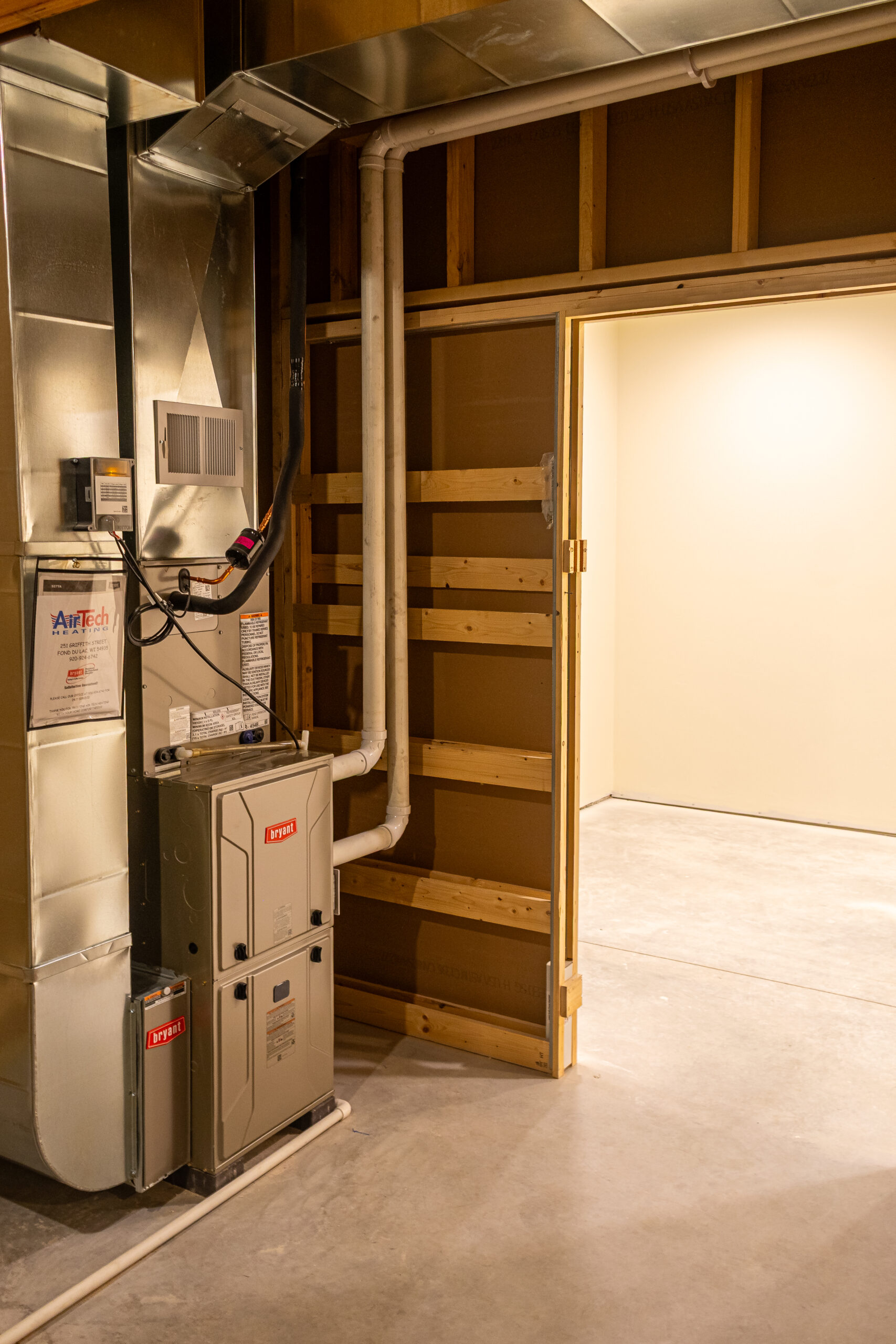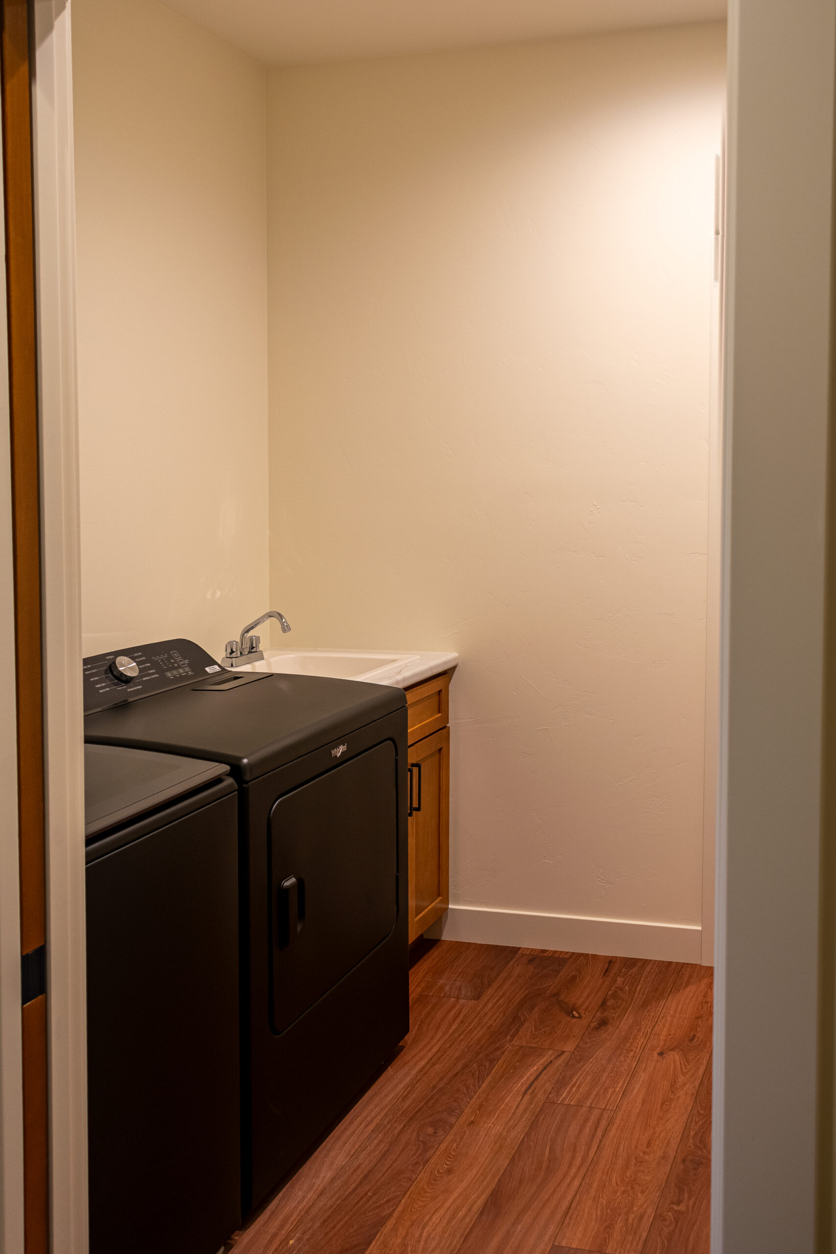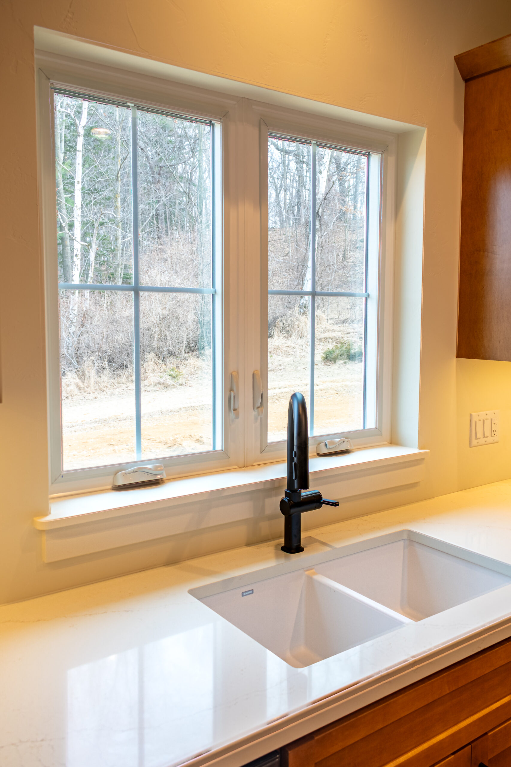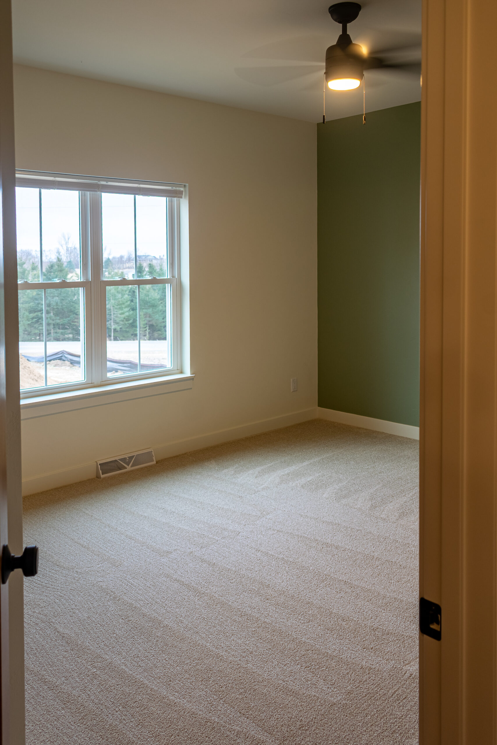 From the moment you enter, the space opens effortlessly, guided by soft transitions and an understated palette. Warm wood tones carry throughout the home, bringing a sense of continuity and calm, while subtle contrasts—like the muted green island and dark hardware—add depth without overwhelming the space.